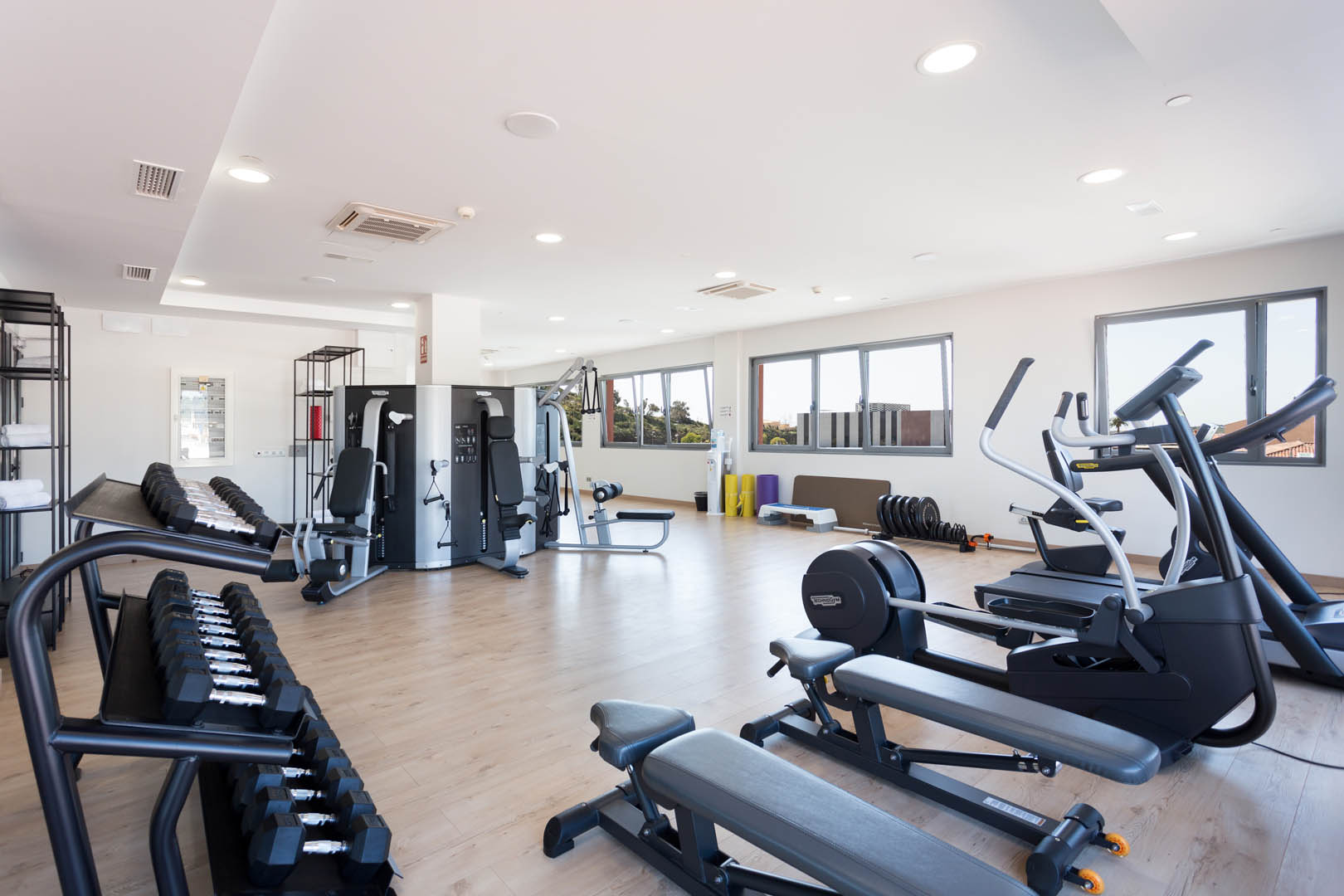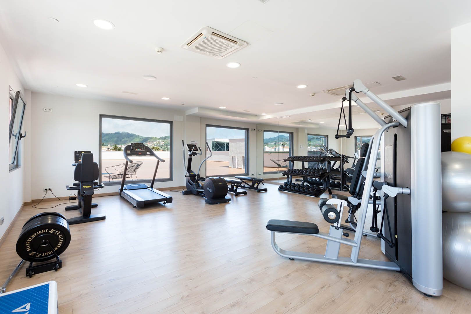 Der Fitnessraum befindet sich in der obersten Etage mit Blick auf unsere Terrasse. Große Fenster sorgen für natürliches Licht und damit für Ihren Komfort.